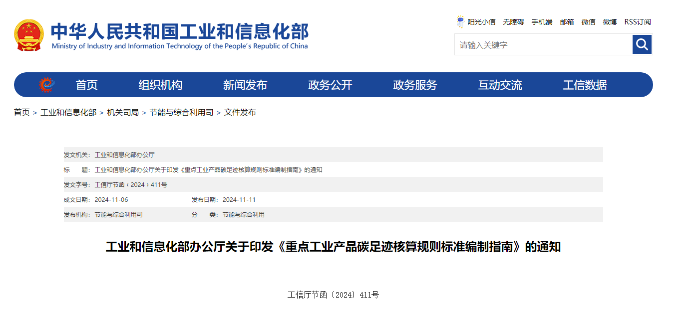 工信部發(fā)布《重點工業(yè)產(chǎn)品碳足跡核算規(guī)則標準編制指南》